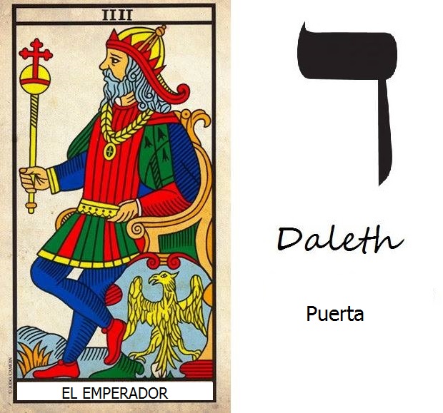 Cuarta letra de muchos alfabetos semíticos como el fenicio, el arameo, el hebreo, el siríaco. Gráficamente, la letra se basa en un glifo de los alfabetos de la Edad del Bronce Medio, llamado dalt, que significa puerta. En el mundo espiritual es la puerta por donde se entra a la creación hacia los 4 vientos, espacios o direcciones pero también la puerta por donde se sale a otra dimensión trascendental y mística con 4 mundos que son: emanación, creación, formación y acción. La gematria de dalet es el numero cuatro. Cuatro representan a las Matriarcas: Sarah, Rebecca, Rachel y Leah. También representa los cuatro mundos creados como se explica en la Cabalá: Atzilus, Beriah, Yetzirah y Asiyah. Además, dalet indica los cuatro elementos fundamentales de la Creación: fuego (energía), aire (gas), agua (líquido) y tierra (sólido). En el Tarot es el Emperador quien está llamado a cruzar las puertas y conquistarlas.